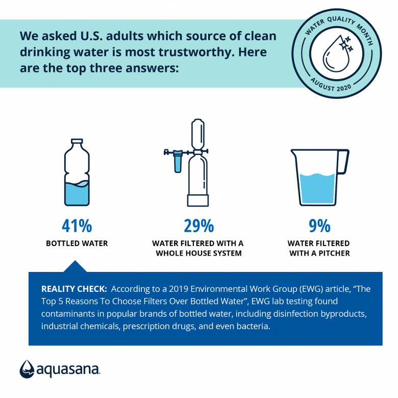 When asked to identify the most trustworthy source of clean drinking water, 41% of American adults cited bottled water — concerning, but a common misconception. In fact, of the 27% of U.S. adults who said they do not filter drinking water at home, one-third of them stated it’s because they buy bottled water instead.
