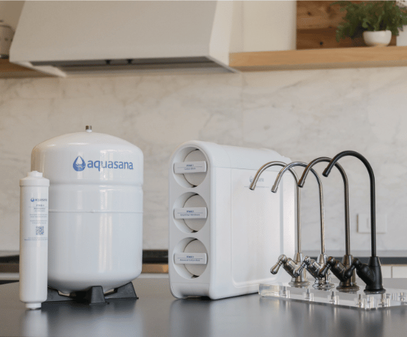 Our SmartFlow® Reverse Osmosis system automatically restores beneficial minerals and removes up to 99.99% of 90 contaminants such as fluoride, arsenic, chlorine, and lead for healthier, better-tasting water right from your tap. Experience the difference and try Aquasana's SmartFlow® Reverse Osmosis system.