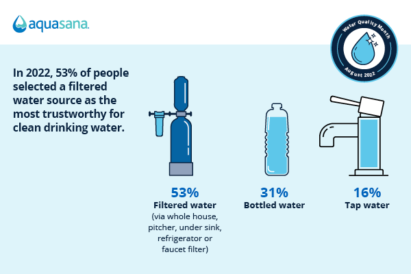 In fact, this year 69% of people agree it’s necessary to filter their tap water at home, which is up from 63% in 2020. On the same note, more than half (53%) of people selected a filtered water source as the most trustworthy option for clean drinking water in 2022.