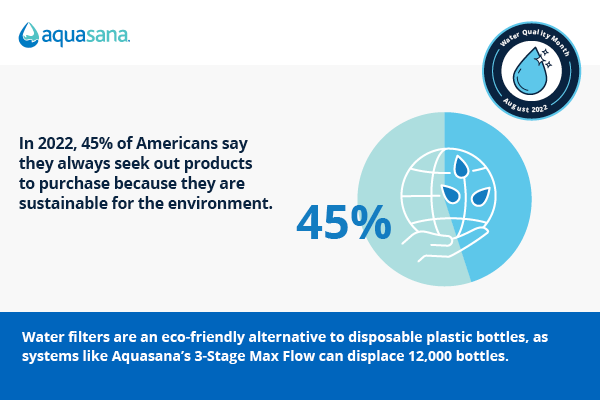 As for why people are purchasing water filters to help the environment, one key reason is that water filters are a far more eco-friendly alternative to plastic bottles. In our recent article on plastic bottles, we found that the average American uses 167 disposable bottles per year, 80% of them end up in landfills, and they take 450 years to decompose. Switching from plastic bottles to a water filter helps the environment; in fact, in 2019 our water filtration systems displaced over 1.2 billion single-use plastic bottles.