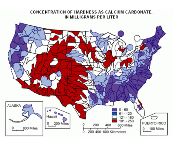 Regions with high concentrations of limestone and other mineral-rich rocks tend to produce harder water. This is especially common in areas across the Southwest, Midwest, and parts of the Southeast United States. The U.S. Geological Survey (USGS) has mapped water hardness across the country, showing that western states like Arizona, Nevada, and California generally have harder water than coastal and northeastern states.