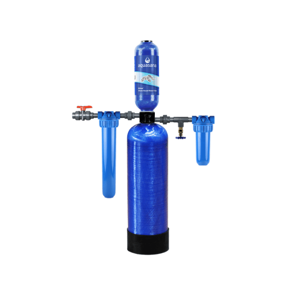 Whole house water filters are point-of-entry systems that treat water at your main water line to provide filtered water throughout your entire home. These systems are installed at the main water line, so all incoming water is filtered before it goes into the pipes in your home. This means that you’ll get filtered water from every faucet and shower, and all of your water-using appliances will be supplied with filtered water. However, the systems won’t address contamination from your plumbing, since water passes through pipes after filtration.