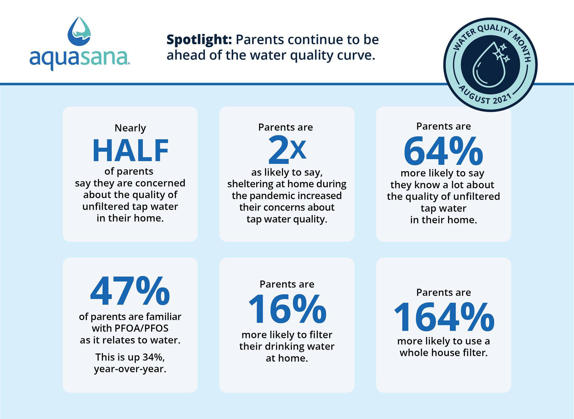 On the other end of the spectrum, parents are 164% more likely to use whole house water filters. Unlike point-of-use filters, whole house systems filter water from every tap — including for drinking, brushing teeth, bathing, and laundry — and improve indoor air quality, as well.